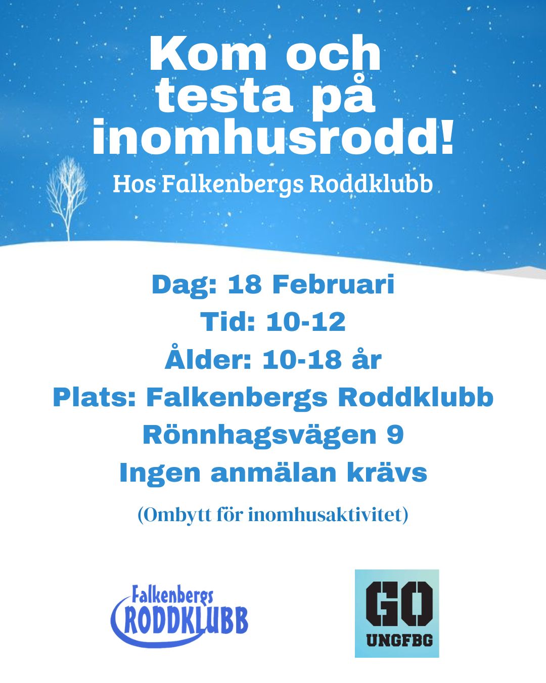 Nyfiken på inomhusrodd? Onsdagen den 18 februari kl. 10–12 bjuder Falkenbergs Roddklubb in barn och ungdomar 10–18 år till ett prova-på-tillfälle i inomhusrodd.